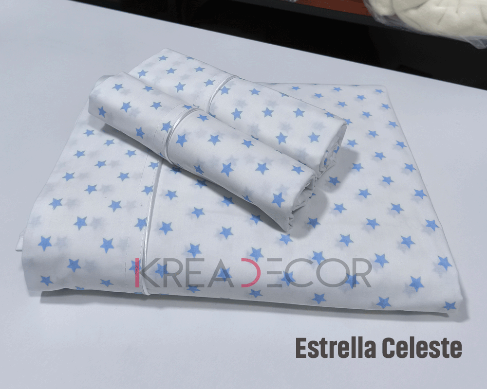 Siente la suavidad y frescura que te brindan nuestras sábanas de algodon con diseños de estrellas celestes, elaboradas en algodon pima de la más alta calidad para garantizarte un sueño reparador y placentero.
